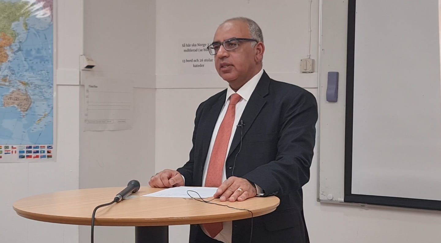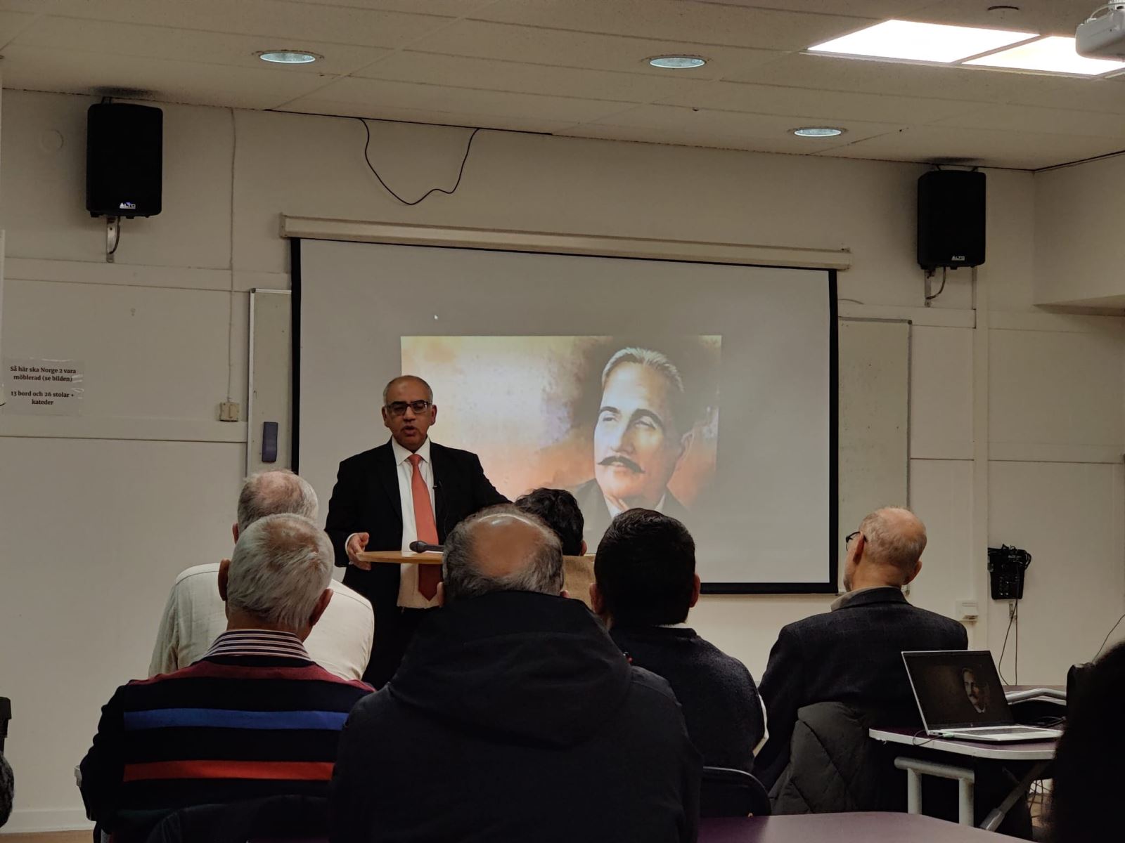 The ambassador of Pakistan Dr. Zahoor Ahmed and Prof. Dr. Heinzwiernerweissler of Uppsala University were the special guests of the event, held on 19th November 2023 at Iqbal Academy Scandinavia. The ceremony was moderated by Imran Khokhar, General Secretary of Iqbal Academy Scandinavia. The Director Iqbal Academy Pakistan, Prof. Dr. Abdul Rauf Rafiqi spoke about Allama Iqbal's universal brotherhood, philanthropy, and peace in his video message. .jpg)