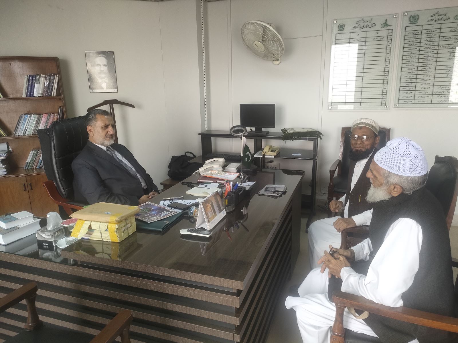 Deputy Director Education, Jamia Tahir Ashraf Muhammad, Maqsood Hasan Qadri Nowshahi Owaisi met with Director Iqbal Academy Pakistan Dr. Abdul Rauf Rafiqui on November 1, 2023. He congratulate him on assuming the post of Director. During the meeting, discussions were held on academic, literary and intellectual issues. At the end of the meeting, Dr. Abdul Rauf Rafiqui presented a book to Mr. Maqsood Hussain. Mr. Muhammad Maqsood Hussain Owaisi presented a Magazine to Director.
