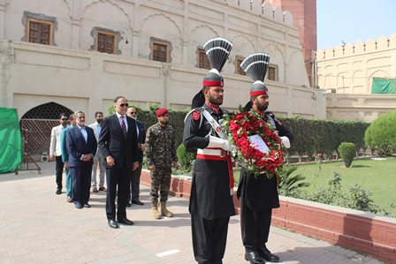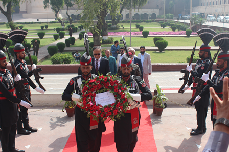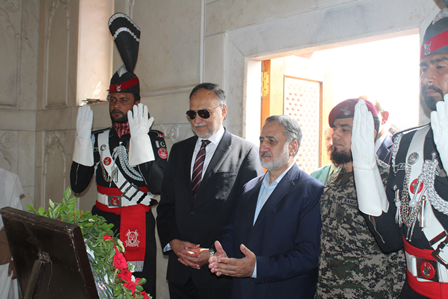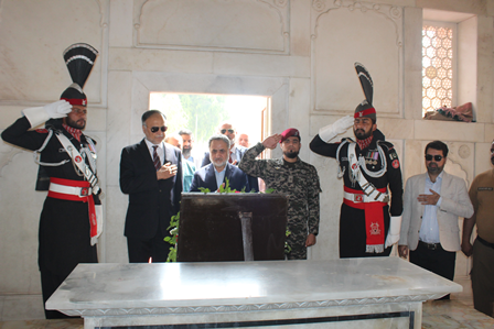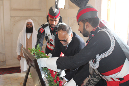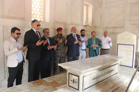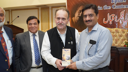 Professor Ahsan Iqbal, accompanied by Dr. Abdul Rauf Rafiqui, Director of Iqbal Academy Pakistan, paid a visit to the mausoleum of Allama Iqbal. Professor Ahsan Iqbal awarded Dr. Muhammad Arif Khan the Presidential Award for his Urdu book on Iqbal, titled "Kamal-e-Iqbal Aur Ikisween Sadi" (The Greatness of Iqbal and the 21st Century).