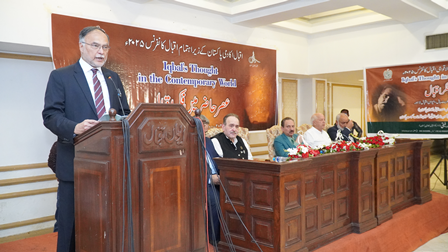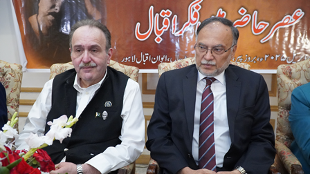 Teachings of Allama Iqbal Are a Beacon of light for Us: Federal Minister for Planning and Special Initiatives, Professor Ahsan Iqbal On the 87th death anniversary of Allama Muhammad Iqbal, a conference titled “The Modern Era and the Thought of Iqbal” was held at Aiwan-e-Iqbal under the auspices of Iqbal Academy Pakistan. The inaugural session of the one-day Iqbal Conference was presided over by the Federal Minister for Planning, Development, and Special Initiatives, Mr. Ahsan Iqbal. The chief guest was Muneeb Iqbal, the grandson of Allama Iqbal. Other distinguished guests included renowned Iqbal scholars Dr. Taqi Abedi, Dr. Fakhr-ul-Haq Noori, Dr. Arif Khan, Dr. Najeeb Jamal, Dr. Rabia Sarfraz, and Rana Ijaz Hussain. Dr. Abdul Rauf Rafiqui, Director of Iqbal Academy Pakistan, offered words of thanks, and the event was moderated by Dr. Mujahid Hussain. In his speech, Ahsan Iqbal stated that the youth are the national asset, and Allama Iqbal always regarded them as the real strength of a nation. According to Iqbal, it is the youth who can lead nations out of decline. The federal minister announced that the government would incorporate Iqbal’s thought into the national curriculum. He emphasized that familiarizing the youth with Iqbal’s philosophy could help protect them from extremism. He urged the youth to understand Iqbal’s message, acquire modern knowledge, and contribute actively to the nation’s progress. Ahsan Iqbal further stated that branches of the Iqbal Academy will be established in all provinces of Pakistan, and grand national and international celebrations will be held in 2027 to mark the 150th birth anniversary of Allama Iqbal. Muneeb Iqbal highlighted that Iqbal’s poetic and philosophical message emphasizes love, peace, and universal brotherhood, which should be interpreted in the context of the present age—especially his famous message, "Love conquers the world." He stressed the importance of integrating Iqbal's ideas into the educational system. Dr. Abdul Rauf Rafiqui thanked all the distinguished guests and said that in the modern era, Iqbal’s philosophy of Khudi (selfhood), continuous struggle, and love for the Prophet (PBUH) remains a guiding light for the spiritual and intellectual growth of nations. He added that it is the vision of Iqbal Academy Pakistan to convey Iqbal’s message to the youth so they may help build a strong and self-aware nation. Renowned Iqbal scholars presented their research papers during the conference, shedding light on Iqbal’s philosophy, poetry, and political contributions. During the event, Dr. Muhammad Arif Khan was once again honored with the Presidential Award for his 2021 Urdu book "Kamal-e-Iqbal Aur Ikisween Sadi". Earlier, Federal Minister for Planning and Special Initiatives, Professor Ahsan Iqbal, accompanied by the Director of Iqbal Academy Pakistan, visited the mausoleum of Allama Iqbal, laid a floral wreath, and offered prayers. Later, the "Iqbal Memorabilia Corner" was also inaugurated at Iqbal Academy Pakistan.