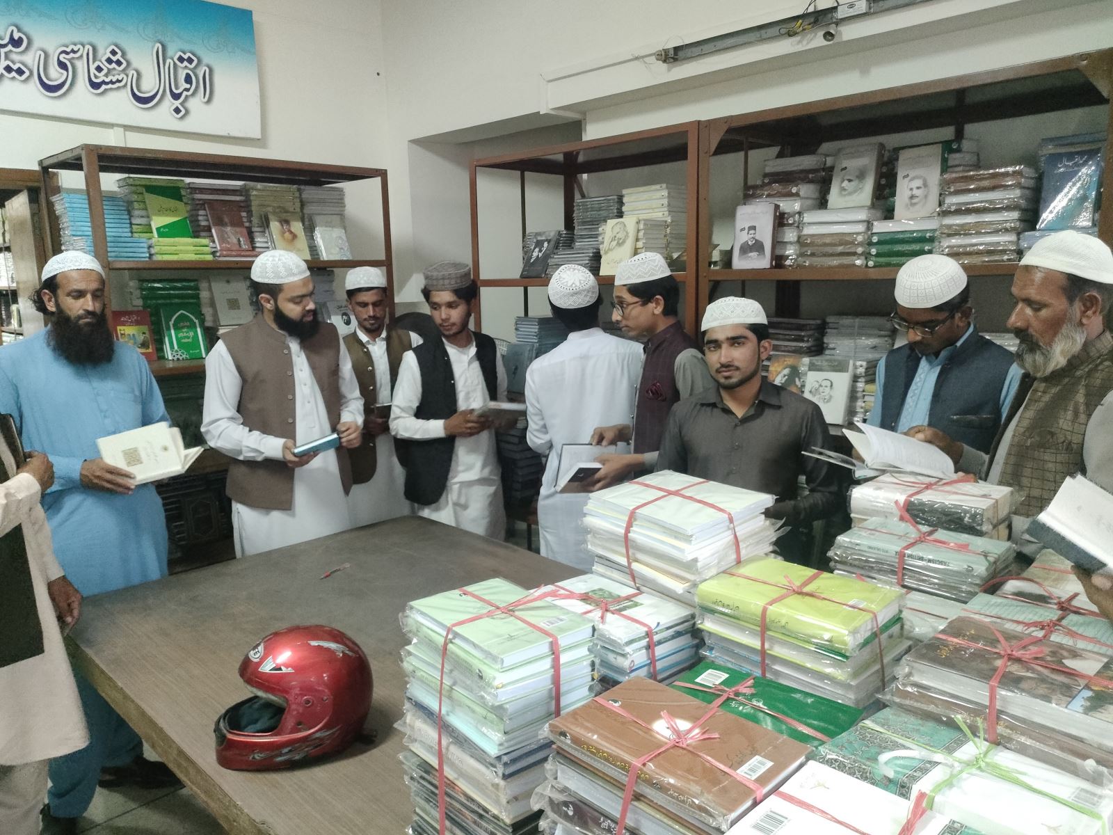 Nazim Jamia Muhammadi Sharif Chiniot, Sahibzada Qamar-ul-Haque Sialvi visited Iqbal Academy Pakistan along with teachers and students of his instituteo on 8th November 2023. On this occasion, an academic session was organized in the library of Iqbal Academy in which teachers and students asked questions based on the practical life, philosophical thought and academic aspects of Allama Iqbal. Head of Department of Academics, Iqbal Academy, Dr. Tahir Hameed Tanoli answered the questions satisfactorily. The delegation of Jamia Muhammadi, Chiniot also visited the sales center of Iqbal Academy. Mr. Qamar-ul-Haque Sialvi thanked the Director of Iqbal Academy Pakistan for this informative visit. .jpg)
