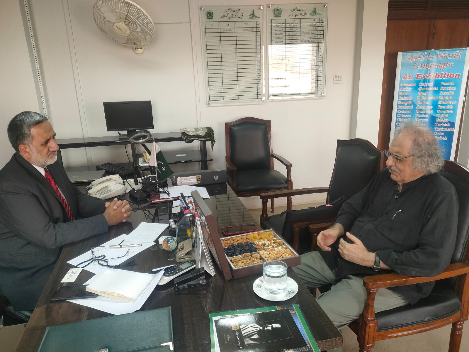 Mr. Sarosh Irfani, son of Dr. Khawaja Abdul Hamdi Irfani and former Director of Research and Publications, National College of Arts, Lahore met with Director of Iqbal Akademi Pakistan, Dr. Abdul Rauf Rafi