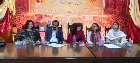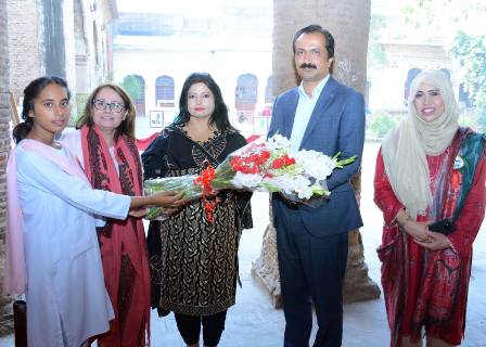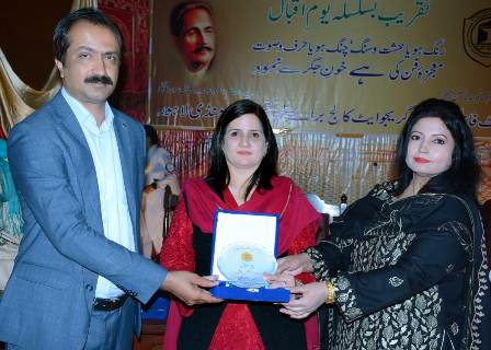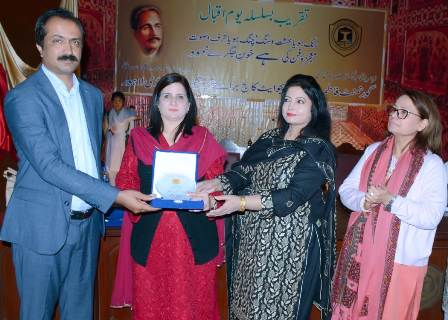 Iqbal Day ceremony was organized on the occasion of the 145th birth anniversary of Allama Iqbal on Wednesday, November 30, 2022 by the Iqbal Society Urdu department and under the patronage of the Principal of the college Ms. Samina Yasmin Bhatti at Government Fatima Jinnah College for Women Choona Mandi. The chief guest of the ceremony was Iqbal Scholar, researcher and translator Professor Dr. Baseera Ambrin, Director of Iqbal Academy and Honorable Shahzad Munawar, Director of Education Colleges was the guest of honour. Principal Ms. Samina Bhatti, Vice Principal Ms. Seemaba Babri, advisory members, teachers and a large number of students participated in the event. Hira Bilal performed the duties of stage secretary. Hafiza Amina started the ceremony by reciting the Holy Quran. After the recitation Iqbal's most famous naat "Loh Bhi To Qalam Bhi To" was performed by Fatima Shakoor. Mah Noor and her fellow students presented "Khudi Ka Sirr e Nihan". After that, a documentary based on Iqbal's life and poetry was presented. With the help of this documentary, salient aspects of Iqbal's personality were explained. The students presented a tableau on Iqbal's famous poem "Gabriel and Iblis". Arsh Mualla and Saharash played the roles of Gabriel and Iblis. Allama Iqbal's famous poems "Shikwah" and "Jawab Shikwah" were presented by two students Anees Fatima and Mah Noor Gul. The students proved that they are Shaheen of Iqbal by memorizing many selected poems of Iqbal. Ms. Rozeena Saeed (Urdu Department), Ms. Sajida Malik (Education Department) were among the judges of this Bait Bazi competition. Both the teams were declared equal in this verses reciting competition. In her keynote speech, Prof. Dr. Baseera Ambrin discussed the life details of Allama Iqbal, the philosophy of self, the concept of woman in Iqbal’s thought and the philosophy of motherhood. She presented Iqbal's philosophy to the audience in a very simple and understandable way. All the attendees benefited from his lecture. After the speech of Professor Dr. Baseera Ambrin, Kalam e Iqbal was presented by Fatima and her colleague students. The guest of honor, Director of Education Colleges Mr. Shahzad Munawar spoke about the event. Principal Ms. Samina Bhatti thanked the guests. In cooperation with Urdu Department and Iqbal Society, Department of Fine Arts organized a painting and calligraphy competition related to Allama Iqbal and his poems, in which the students took full part. In this competition, Ms. Rubina Shaheen and Ms. Faiza Bashir, teachers of the Fine Arts Department, performed the duties of judges. A book stall was set up by Iqbal Academy Pakistan in which all the teachers and students showed keen interest. This stall included many rare books on Allama Iqbal. At the end of the ceremony, prizes will be distributed among all the participating students. Prof. Dr. Baseera Ambrin, Director of Iqbal Academy, presented gifts of books to Shahzad Munawar, Director of Education (Colleges), Principal College, Ms. Samina Yasmin Bhatti and President of Urdu and Iqbal Society. Principal Ms. Samina Yasmin Bhatti presented commemorative shields and calligraphy created by the students of Fine Arts Department as gifts to the guests. The ceremony concluded with the National Anthem and thanks to all the departments and employees who contributed to the event.