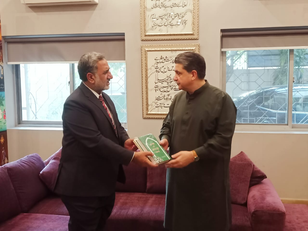 Director of Iqbal Academy Pakistan Dr. Abdul Rauf Rafiqui meeting with Allama Muhammad Iqbal's grandson and chairman, Dabistan e Iqbal, Mian Iqbal Salahuddin on October 25, 2023..jpg)