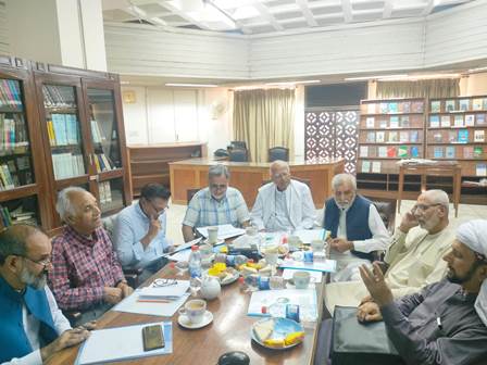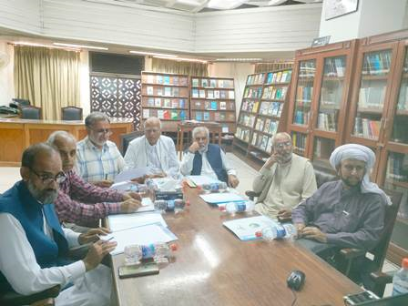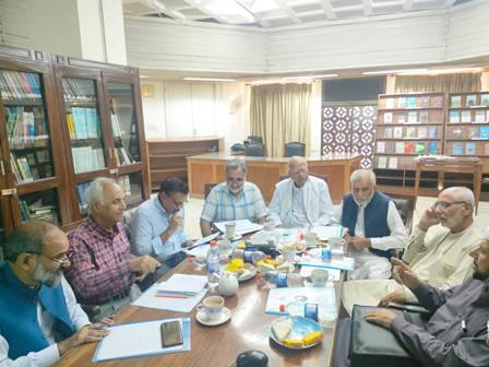 The meeting of the expert committee for the National Presidential Iqbal Award (Urdu) for the year 2022 was held on Wednesday, June 5, 2024, at the Iqbal Academy Pakistan library under the chairpersonship of Professor Dr. Moeenuddin Aqeel. Dr. Abdul Rauf Rafiqui, Director, Iqbal Academy Pakistan, welcomed the participants as the convener of the Iqbal Award Committee. Besides them, Dr. Talib Hussain Sial, Dr. Khalid Iqbal Yasir, Professor Dr. Najeeb Jamal, Dr. Yusuf Awan and Dr. Ghulam Qasim Mujahid Baloch attended the meeting. Prof. Dr. Abdul Razaq Sabir, TI, Vice Chancellor University of Gwadar and Dr. Salahuddin Mengal (Islamabad) joined the meeting online. Dr. Tahir Hamid Tanoli, Assistant Director (Acad) was also present in the meeting. The results of the experts were complied and the chairperson announced the results. The recommendations of the Expert Committee will be presented to the Selection Committee for approval and onward transmission to the President of Islamic Republic of Pakistan with the request to confer the Award. Mr. Faheem Arshad Network Administrator, Mr. Husnain Abbas (Assistant) and Mr. Muhammad Ishaq, Public Relations Officer of the Academy assisted the meeting. During the meeting, Dr. Abdul Rauf Rafiqui proposed that e-books may also be considered the Presidential Iqbal Award. Prof. Dr. Abdul Razaq Sabir added that the consideration of E-Books for awards is not the issue of the Iqbal Academy only. He suggested that the Academy should consult other literary institutions before putting up the matter before Selection Committee for approval. Dr. Khalid Iqbal Yasir proposed that translations and articles on Allama Iqbal's thought and art should also be nominated in the awards categories and that an Iqbal Council at international level should be established.