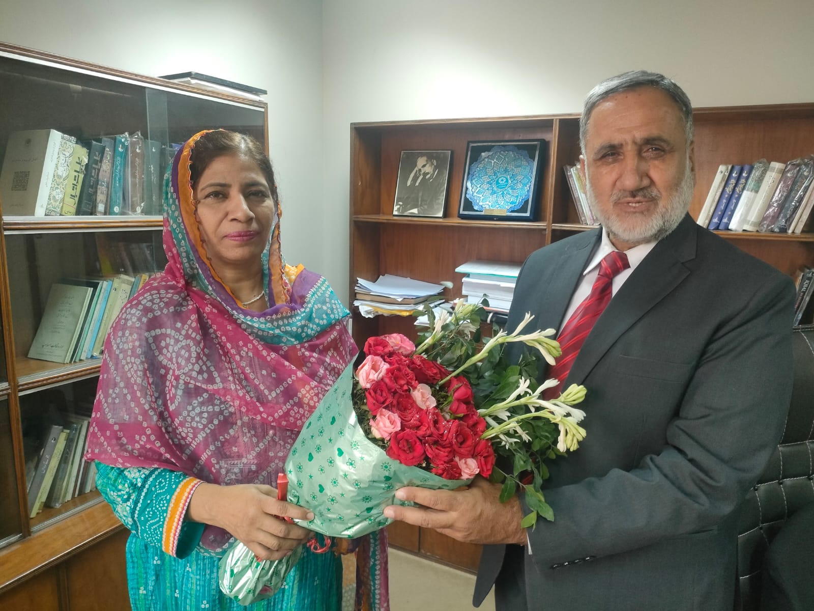 Dr. Zaib un Nisa Saroya met the Dr. Abdul Rauf Rafiqui and congratulated him on his appointment as Director of Iqbal Academy Pakistan. She expressed about the activities of Bizm Fikr Iqbal International Women's Wing regarding the understanding of Iqbal. .jpg)