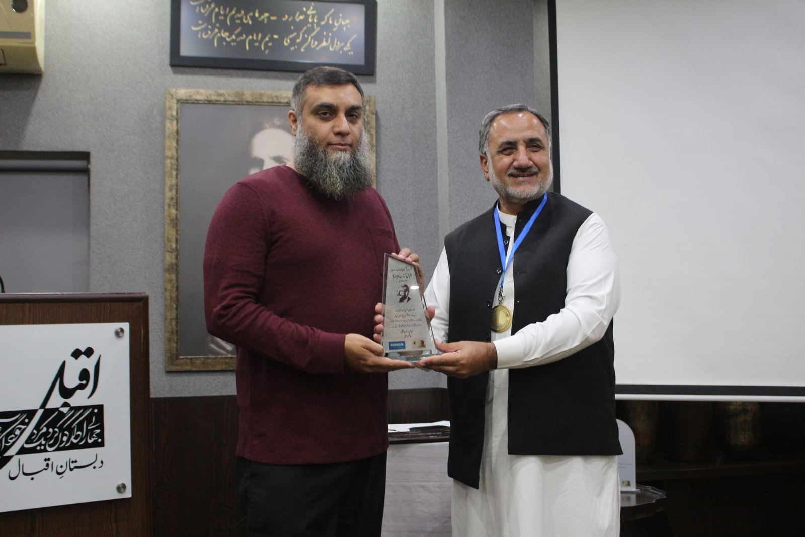The ceremony of Iqbal Book Award 2022-23 was organized on November 25, 2023 at Dabastan-e-Iqbal, Lahore with the support of Berger Pintsa Pakistan Limited. The ceremony was presided over by Director Iqbal Academy Pakistan Dr. Abdul Rauf Rafiuqi. Dr. Rafiuddin Hashmi's book "Katabiat Iqbal" was awarded with a special award. And this award was presented to Dr. Rafiuddin Hashmi by the hands of Dr. Abdul Rauf Rafiuqi. The winners of the Iqbal Book Award were given medals by the chief guest and appreciated. On behalf of Allama Iqbal Stump Society, Dr. Abdul Rauf Rafiuqi will be given Life Time Achievement Award for the year 2023 in recognition of his outstanding services in Iqbaliyat. Dr. Abdul Rauf Rafiuqi, while expressing his thoughts on this occasion, highly appreciated the development of Iqbalat and its promotion of Chairman Allama Iqbal Stump Society Mian Sajid Ali. .jpg)
