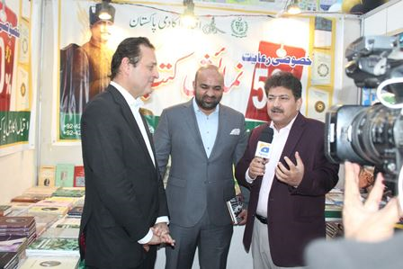 During the five-day international book fair, several distinguished personalities visited the Iqbal Academy Pakistan book stall, including former Senator and member of the Governing Body of Iqbal Academy, Mr. Walid Iqbal, Punjab’s Minister for Education, Mr. Rana Sikandar Hayat, renowned motivational speaker, Mr. Qasim Ali Shah, prominent anchorperson and senior journalist, Mr. Hamid Mir, Director, Iqbal Academy Pakistan, Dr. Abdul Rauf Rafiqui, and Chairman of the Iqbal Stamp Society, Mr. Mian Sajid Ali. These visitors not only explored the stall but also recorded their messages.