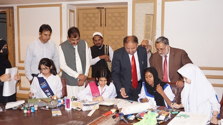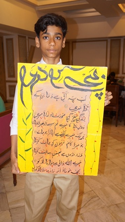 The chief guest of the ceremony was grandson of Iqbal, Mr. Waleed Iqbal, while the judges were Mr. Irfan Qureshi, Secretary General Calligraphy Association of Pakistan, Professor Dr. Zaib-un-Nisa Saroya (Dean of Student Affairs, Government Post Graduate College for Women, Cooper Road, Lahore, Mian Sajid Ali (Chairman Iqbal Stamp Society), Prof. Sana Arsalan, (Department of Art, Education University, Lahore), Dr. Hasan Raza Iqbali, (Department of Urdu, Government Graduate College, Okara), Syed Safdar Kazmi (Professor Waris Shah College, Jandiala Shersheikhopura), Ms. Anam Shahzadi And Mr. Hasnain Mazhari.