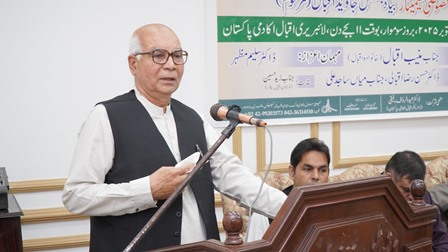 Iqbal Academy Pakistan hosted a special seminar at the Aiwan-e-Iqbal Complex to commemorate the 10th death anniversary of the late Justice (Retd.) Dr. Javed Iqbal. The session was presided over by the Academy’s Treasurer, M. A. Hijazi, while Dr. Abdul Rauf Rafique, Director, Iqbal Academy Pakistan, delivered the vote of thanks. Guest speakers included Dr. Hasan Raza Iqbali (Department of Urdu, University of Okara), Mian Sajid Ali (Chairman, Iqbal Stamp Society), author and Iqbal studies scholar Engr. Inayat Ali and Mr. Khalid Ali Tang. In his address, M. A. Hijazi paid tribute to Justice (Retd.) Dr. Javed Iqbal’s enduring contributions, noting his pivotal role in conveying Allama Iqbal’s thought to younger generations. He emphasized that Dr. Javed Iqbal’s services must not be allowed to fade from public memory and affirmed that the Academy will continue to uphold its responsibility in preserving his legacy. Offering the vote of thanks, Dr. Abdul Rauf Rafique remarked that Justice Javed Iqbal “gave practical shape to Iqbalian philosophy,” adding that the seminar was organized to keep his intellectual and cultural legacy alive on the occasion of his 10th anniversary. Other speakers underscored that Dr. Javed Iqbal was a leading standard-bearer of Pakistan’s ideological foundations. While honoring his status as the son of Allama Iqbal, they noted that through sustained scholarship and rigorous research he earned a distinct and well-deserved place in the world of letters in his own right.